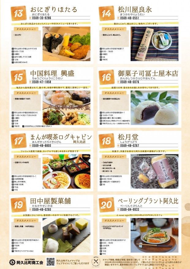 阿久比町の隠れた名店を発見!グルメマップを活用しよう! by ibuki • 2026年02月25日掲載 地元で愛される食事処やカフェなど、美味しい情報が満載! ランチや休憩に、ぜひマップを活用して阿久比町の「食」の魅力を堪能してください!